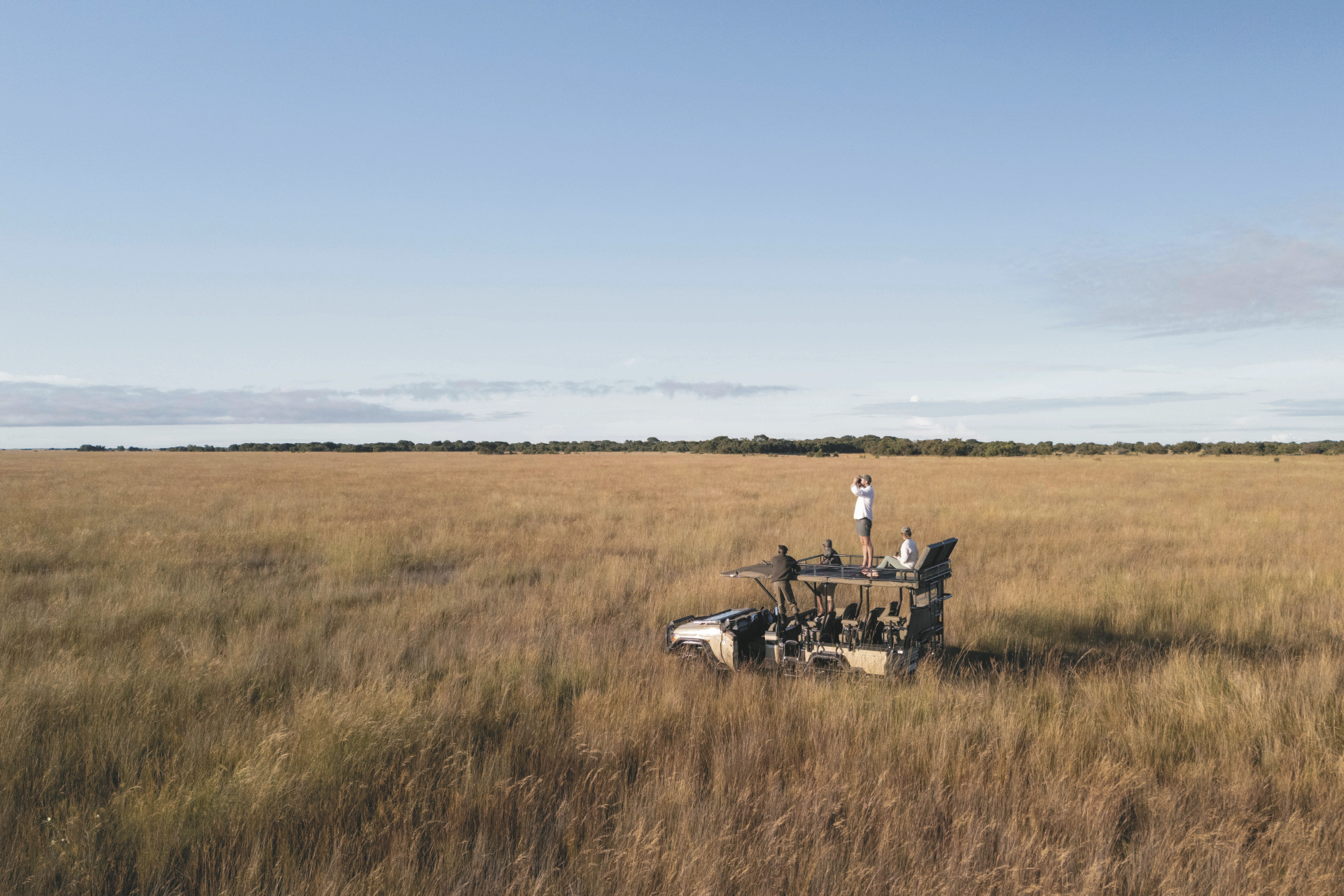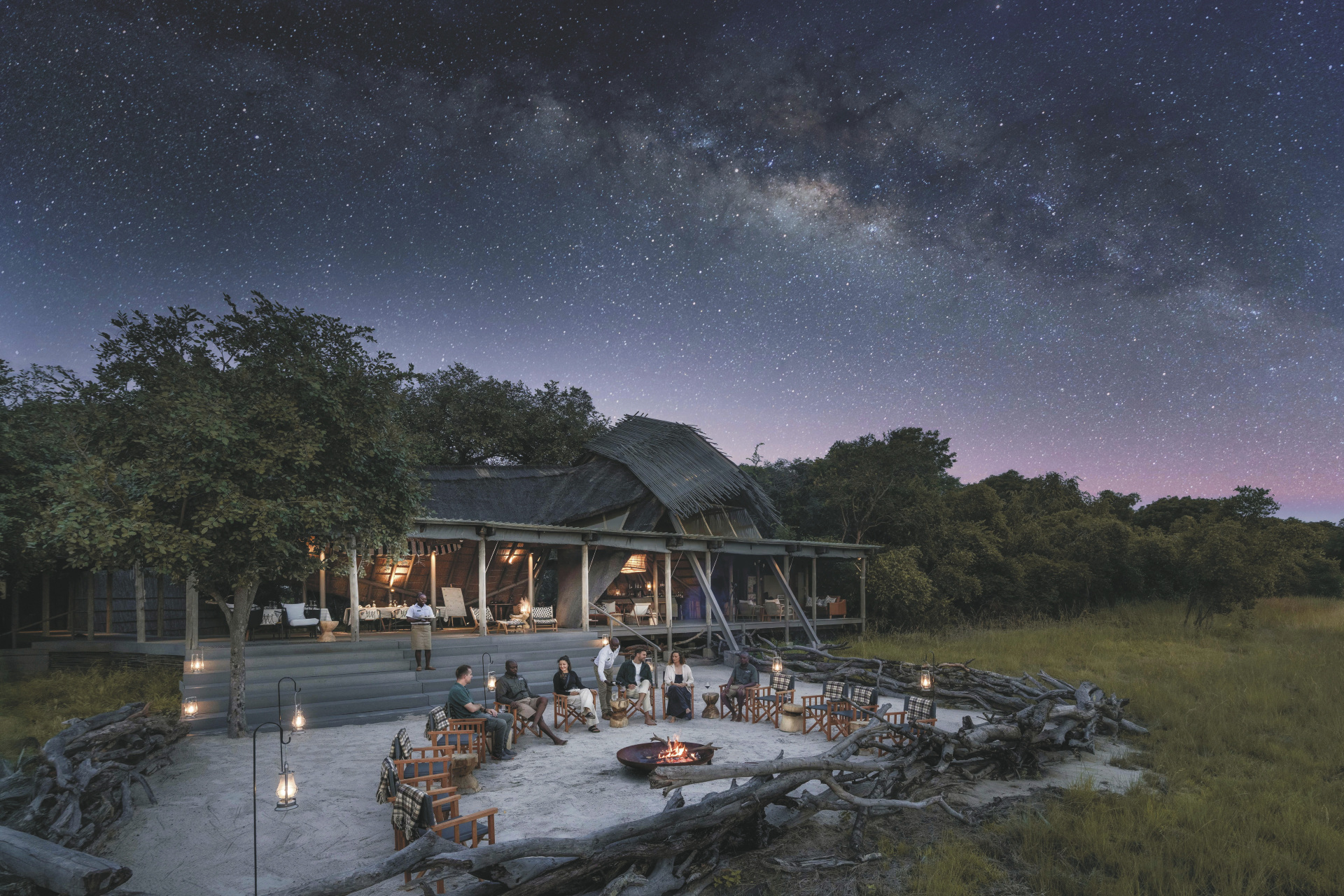 King Lewanika besteht aus einem offenen Hauptbereich mit stilvoller Lounge, gemütlichem Essbereich und einer erhöhten Terrasse, die einen weiten Blick über die Ebenen bietet. Für Entspannung sorgt ein Massageangebot, das Sie nach den Pirschfahrten verwöhnt. Die Architektur aus natürlichen Materialien fügt sich harmonisch in die Landschaft ein und schafft eine warme, authentische Atmosphäre. Kulinarisch erwarten Sie feine Menüs, die unter freiem Himmel serviert werden. Ein besonderes Highlight: Bei einem Aufenthalt von drei Nächten erleben Sie das „Wilderness Sleep Out“, eine Übernachtung unter dem Sternenhimmel, die der spektakulären Gnu-Migration folgt.Eingeschlossene Leistungen: Es handelt sich um ein 3-Nächte-Paket mit Flügen ab/bis Lusaka, Übernachtung, Vollpension, lokale Getränke, Aktivitäten (Pirschfahrten, Buschwanderungen, Kajakfahrten (saisonal)) und Nationalparkgebühren.