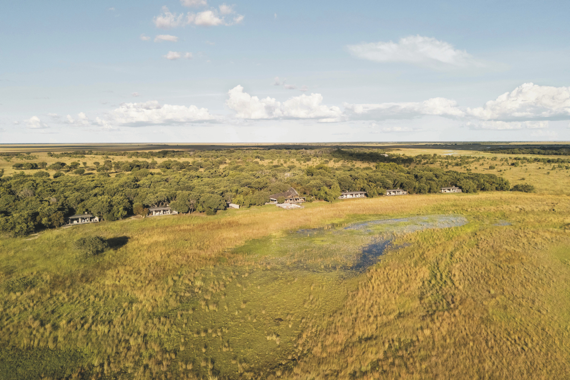 Die Lodge liegt im Herzen des Liuwa Plains Nationalparks im Westen Zambias, einer Region, die für ihre endlosen Graslandschaften und die zweitgrößte Gnu-Wanderung Afrikas bekannt ist. Der nächstgelegene Flughafen ist Kalabo, von dort erreichen Sie die Lodge in etwa zwei Stunden im Geländewagen. Die Umgebung ist geprägt von weiten Ebenen, saisonalen Wasserflächen und einer beeindruckenden Tierwelt.