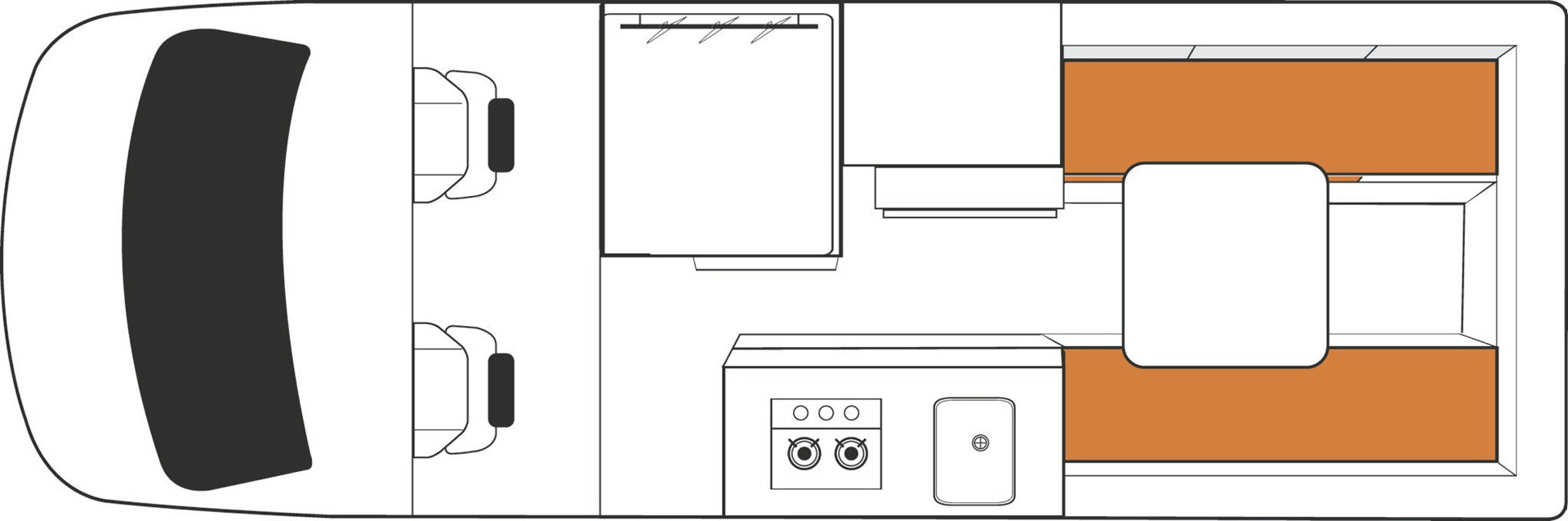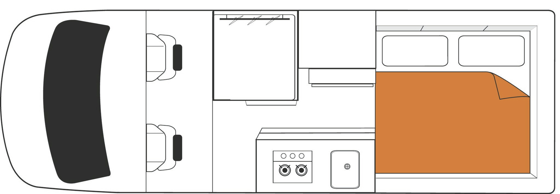 Ein geräumiger aber immer noch wendig und einfach zu fahrender Camper. Einfacher ausgestattet und ohne Dusche/WC - ein preiswerter Camper für 2 Personen.