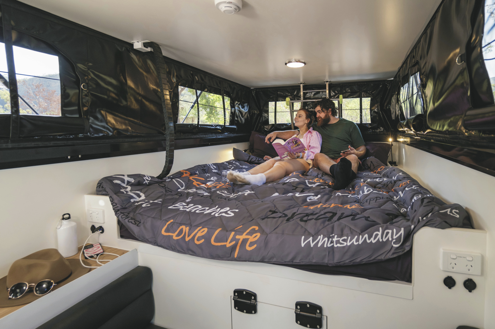 • für 2WD: RV Essential Kit (beinhaltet Campingtisch und -stühle, Baby-/Kindersitz (muss bei Fahrzeugbuchung bestellt werden), tragbarer Heizlüfter (240 V), 3 Sets WC-Chemikalien (für Camper mit Dusche/WC)