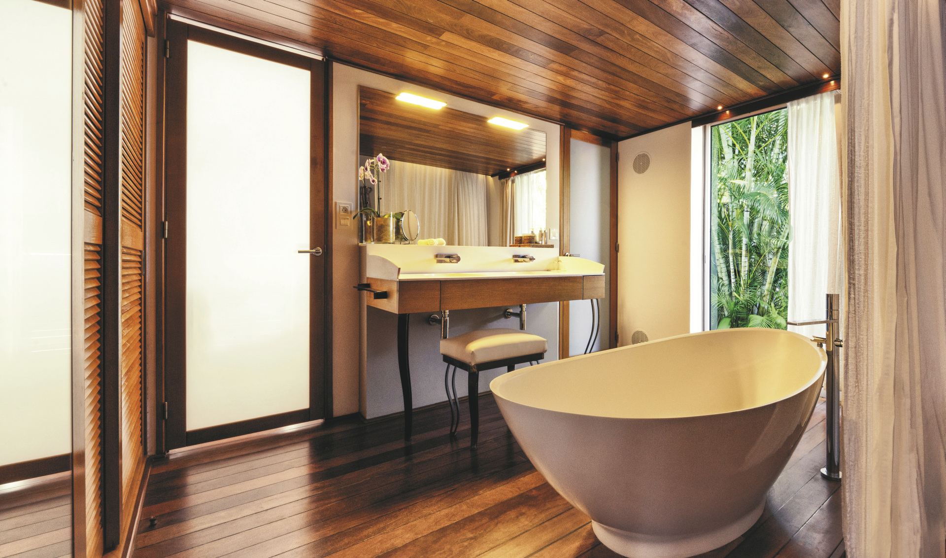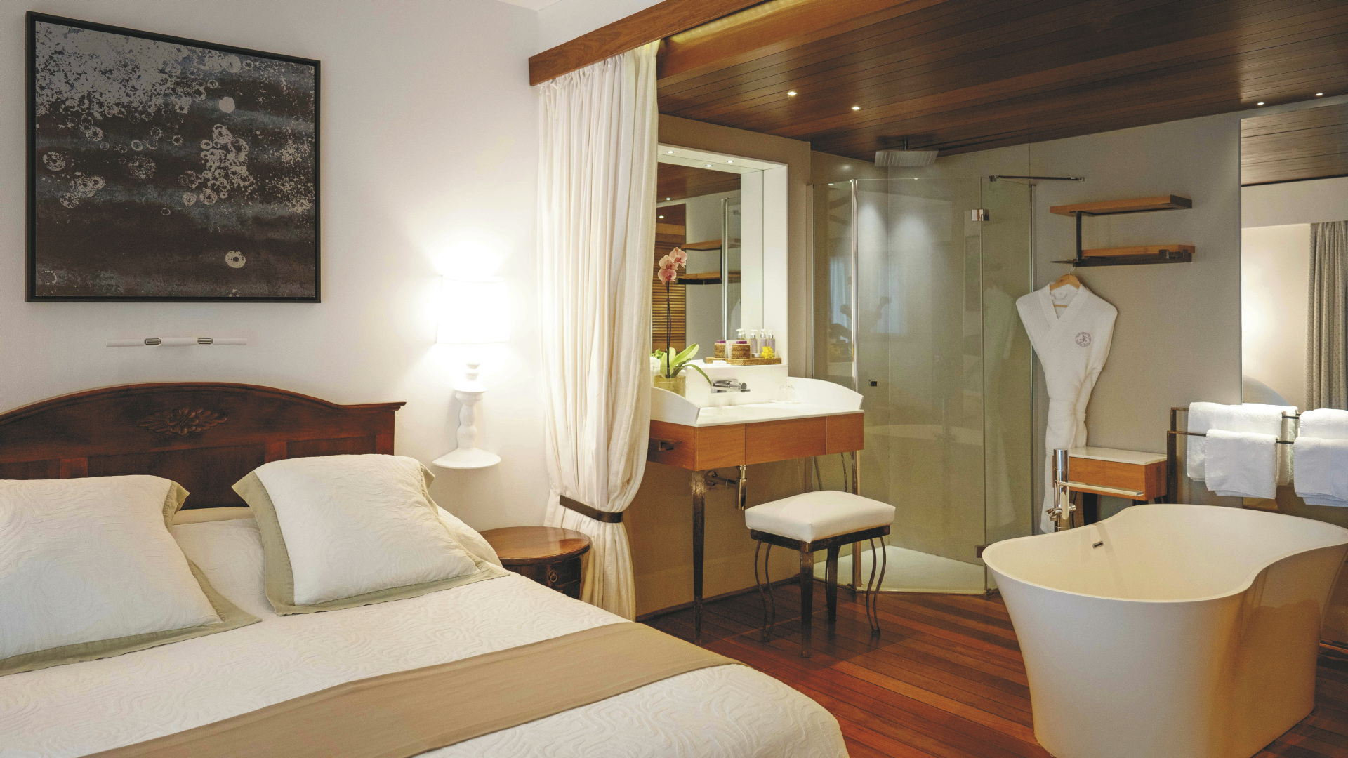 Im großen kreolischen Haus gibt es 12 großzügige Zimmer, die alle Meerblick bieten. Jedes Zimmer verfügt über eine eigene Terrasse oder Balkon zum Entspannen, luxuriöse Bäder mit Pflegeprodukten, sowie Fön, TV, Telefon, Internetzugang, Minibar und Safe. Etwas abseits finden sich zwei Suiten mit einer Größe von 130 m². Bestehend aus zwei Räumen, einem Schlafzimmer und einem Wohnbereich, befinden sich diese im unteren Teil des Gartens. Beide führen auf eine Veranda mit Dusche im Freien, tropischem Privatgarten und Spa mit Liegeplatz. Das alleinige Gegenüber ist der Ozean.