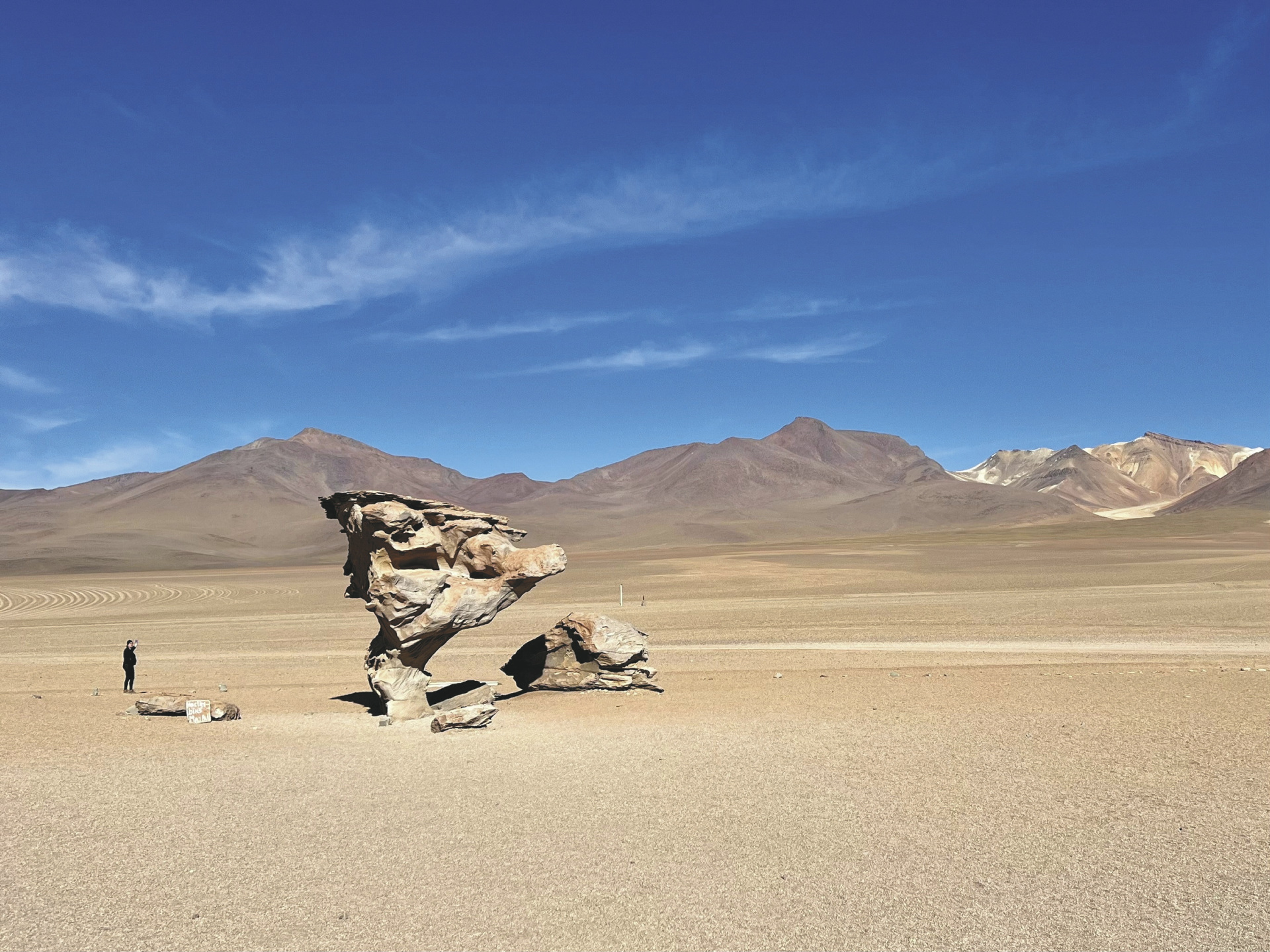 Ein berauschendes Kaleidoskop an Farben und Sinneseindrücken erwartet Sie. Von Wind geformte Steinformationen, die rot schimmernde Laguna Colorada mit ihren unzähligen Flamingos, zischende Wasserdampfsäulen und blubbernde Erdlöcher, die Thermalquellen von Polques, wo Sie in herrlicher Umgebung ein Bad nehmen können und die Laguna Verde, eine türkis schimmernde Lagune am Fuß des majestätischen Vulkans Licancabur. An der Grenzstation Hito Cajon werden Sie erwartet und zu Ihrem Hotel in San Pedro de Atacama gefahren.