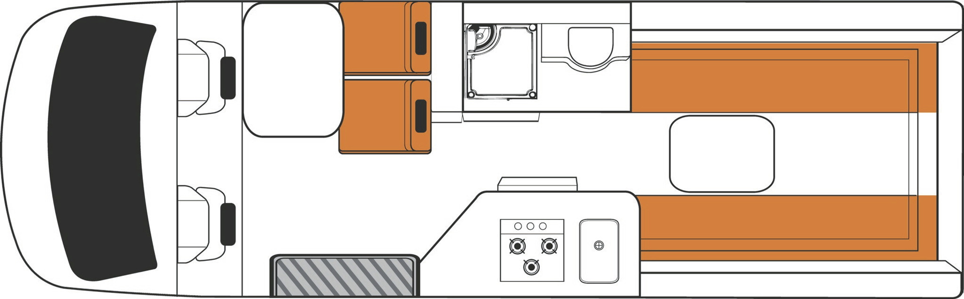 • 2 Sitzplätze in der Fahrerkabine (zum Wohnbereich drehbar)