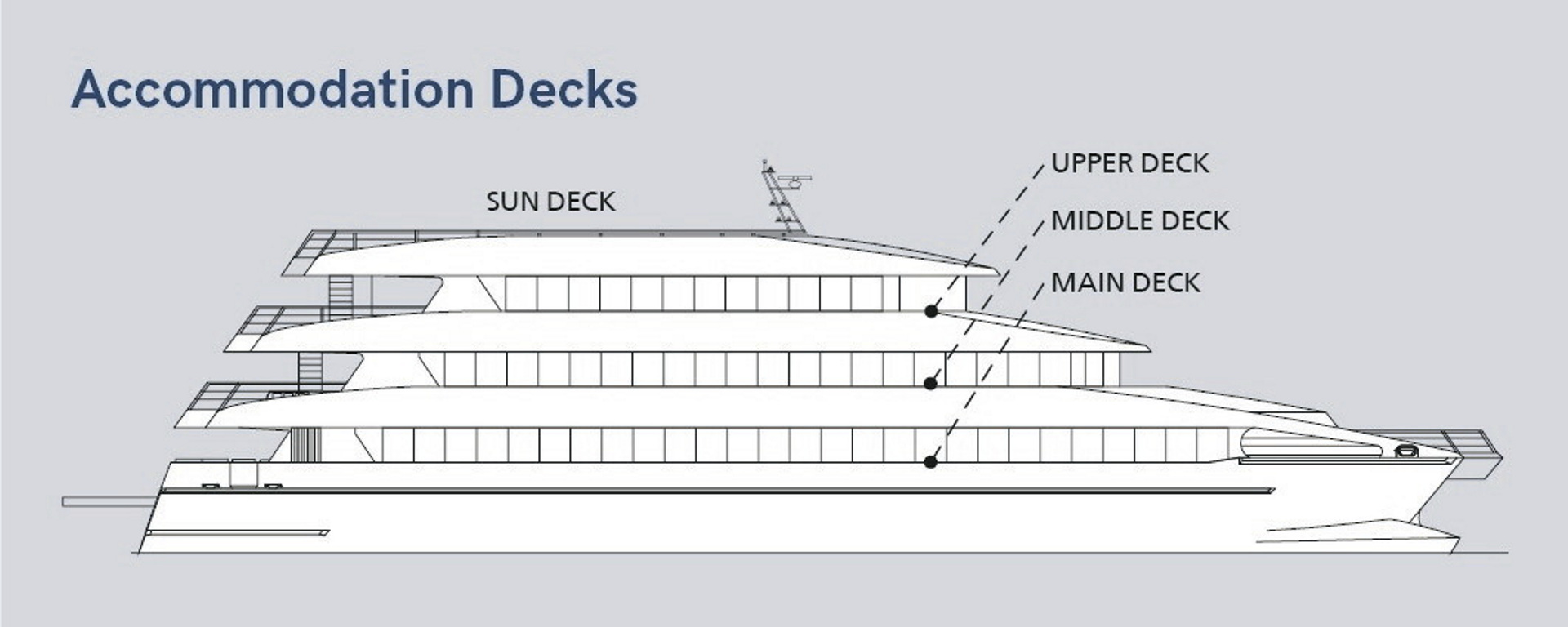Mit maximal 44 Passagieren und bis zu 22 fidschianischen Besatzungsmitgliedern können Sie sicher sein, dass Sie mit echter fidschianischer Gastfreundschaft verwöhnt werden.