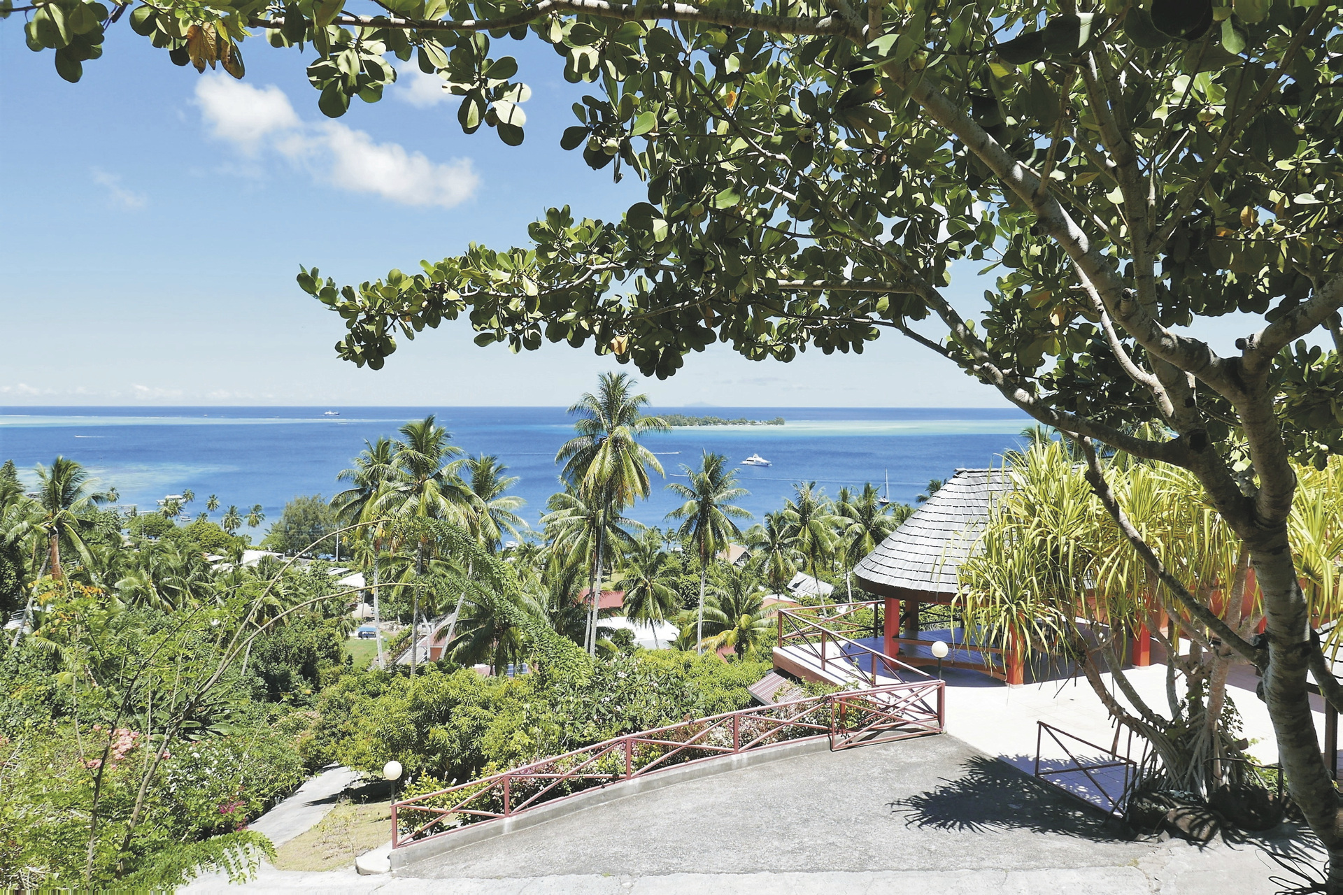 Auf der Hauptinsel Bora Bora, ca. 10 Fahrtminuten nördlich vom Hauptort Vaitape. Der Flughafen von Bora Bora liegt auf einem Motu abseits von der Hauptinsel, es erfolgt ein Bootstransfer nach Vaitape, anschließen der Transfer durch die Unterkunft. Im Bora Bora Yacht Club mit schönen Sonnenuntergängen, kann man gut speisen.