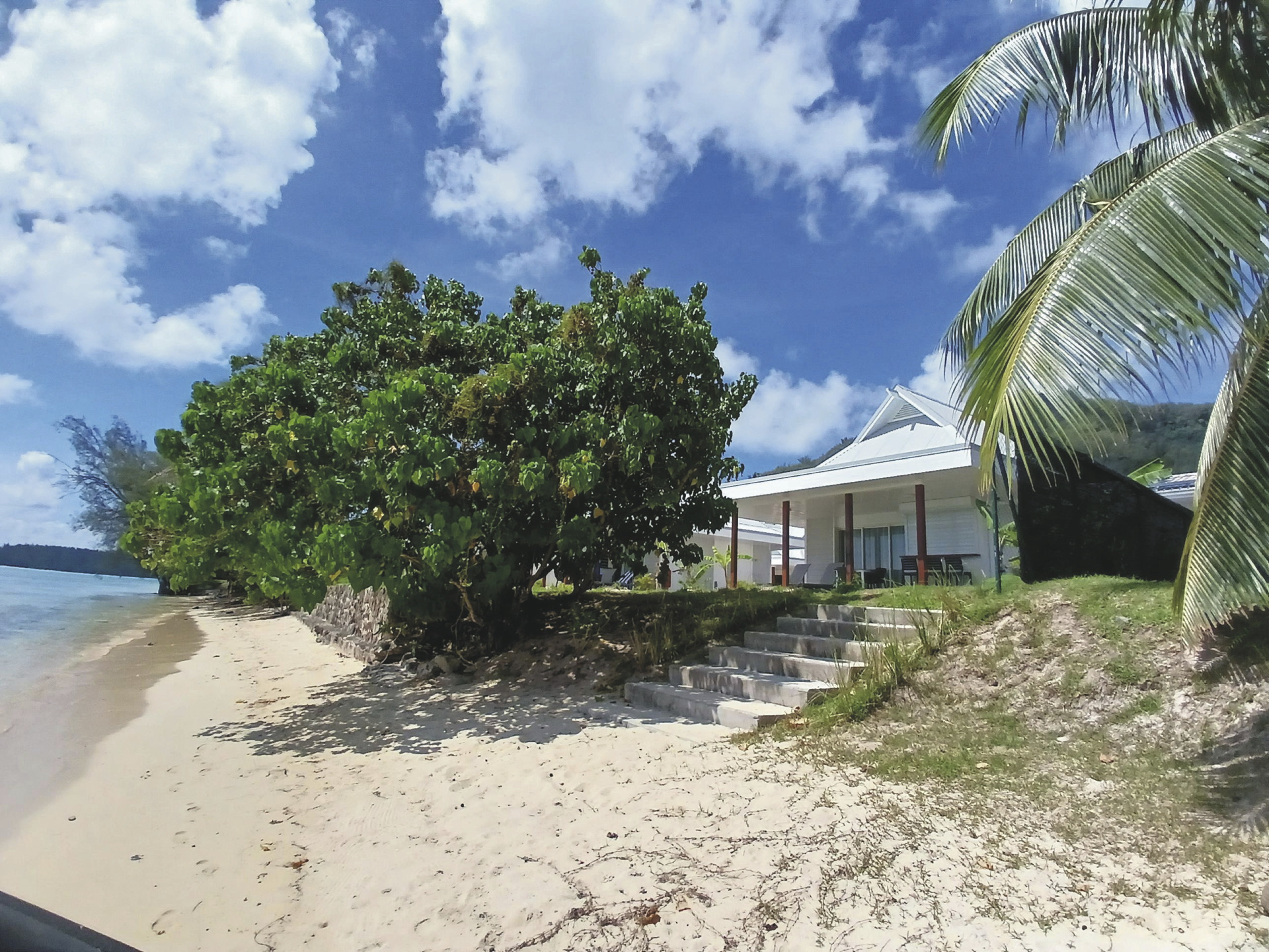 Die Anlage grenzt an eine herrliche Lagune in verschiedensten Blautönen und umsäumt von Kokospalmen. Dank der Ausstattung ist sie für Selbstversorger und auch für einen längeren enstpannten Aufenthalt geeignet. And der Rezeption stehen Ihnen freundliche, hilfsbereite Mitarbeiter zur Verfügung. Ein tropisches Frühstück kann im Frühstücksraum eingenommen werden. Kostenlos: WLAN, Kajaks, SUP's. Fahrräder stehen ebenfalls kostenlos für Einkäufe oder Erkundungen der Umgebung zur Verfügung.